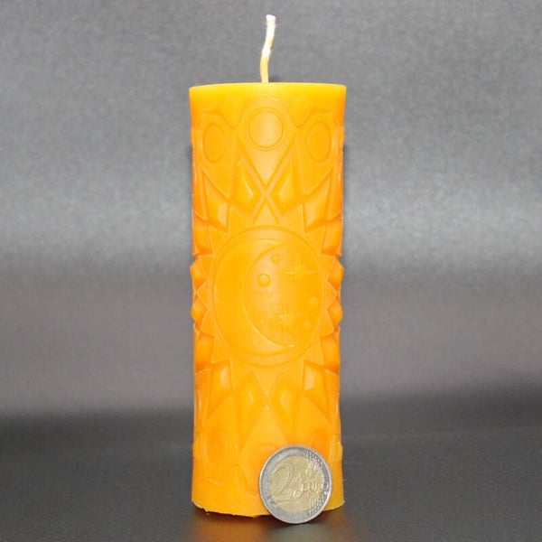 Unsere Stumpenkerzen mit den Motiven Sonne, Mond und Yin & Yang verbinden ästhetisches Design mit wohltuendem Kerzenlicht.