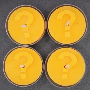 • Set mit 4 Teelichtern – mit Fragezeichen-Motiv als Platzhalter für deine Idee